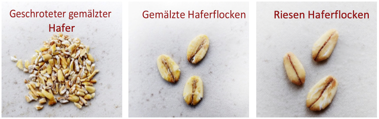 (geschroteter gemälzter Hafer, gemälzte Haferflocken, Riesenhaferflocken)